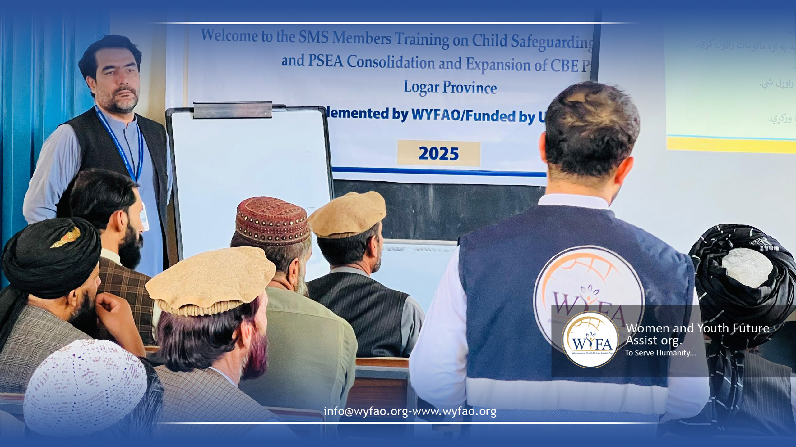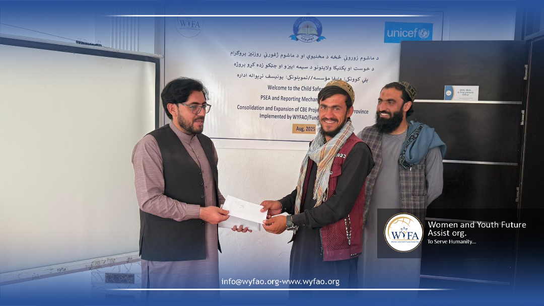 WYFAO organized trainings for School Management Shura (SMS) members in Paktika, Logar, and Khost on Child Safeguarding, PSEA (Prevention of Sexual Exploitation and Abuse), and the consolidation and expansion of Community-Based Education (CBE). The sessions raised awareness on protecting children’s rights, strengthening community responsibility, and ensuring safe and inclusive learning environments. SMS members actively engaged, exchanged ideas, and committed to supporting education while safeguarding children in their communities.