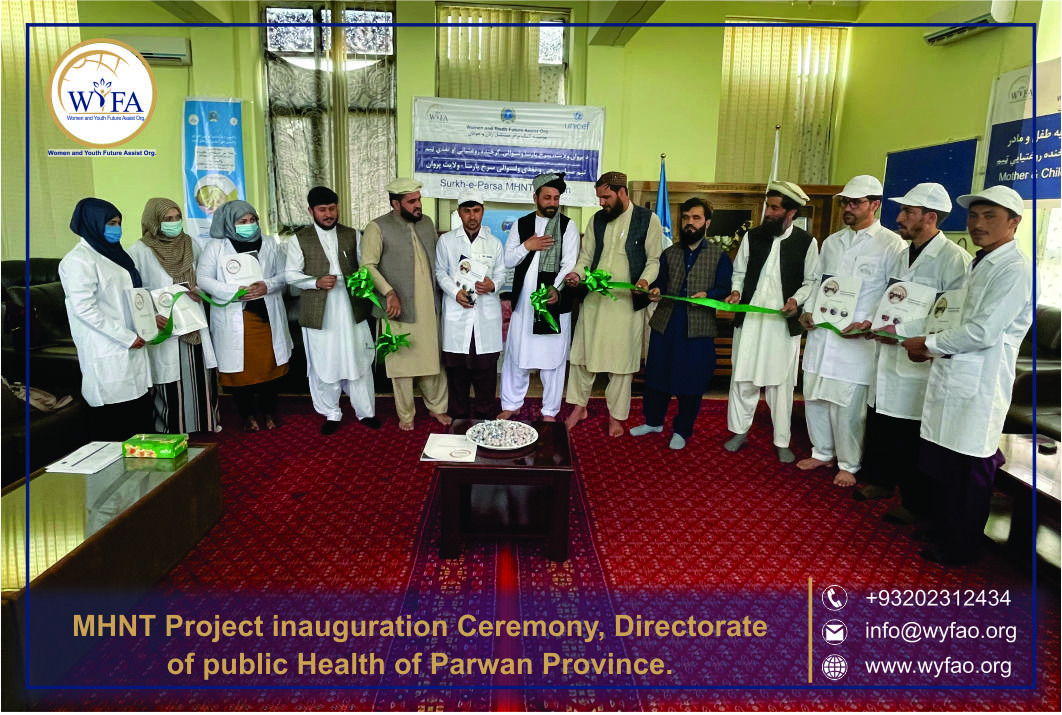 The leadership, operational team, MHNT team, and the honorable Department of Public Health jointly inaugurated the MHNT project in the hall of the Public Health Department of Parwan Province.