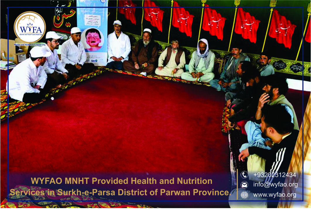 WYFAO Mobile Health and Nutrition Team provided Health and Nutrition services in Surkh-e-Parsa district, Parwan province and also awareness and first health, nutrition information was presented by health and psycho counsellors to pregnant and lactating women.